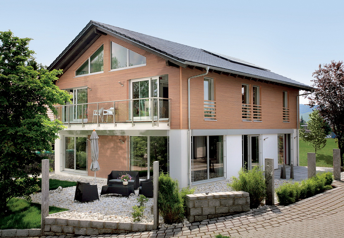Європейські заводи по виробництву збірних будинків мають великий досвід роботи з дизайн-студіями, які добре розбираються в сучасних тенденціях дизайну. В останні роки все більше замовників вибирають максимальну кількість натуральних матеріалів для фінішної обробки, таких як дерево, бо дерево є найважливішим будівельним матеріалом у виробництві збірних будинків, екологічним, теплим і поновлюваним природним матеріалом.
